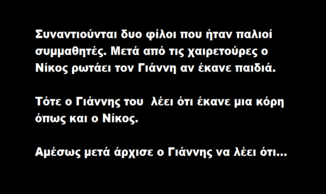 Τότε ο Γιάννης του λέει ότι έκανε μια κόρη όπως και ο Νίκος.