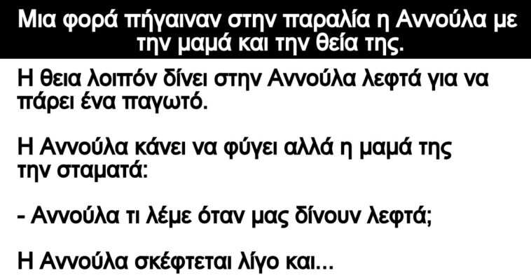 Η θεια λοιπόν δίνει στην Αννούλα λεφτά για να πάρει ένα παγωτό.