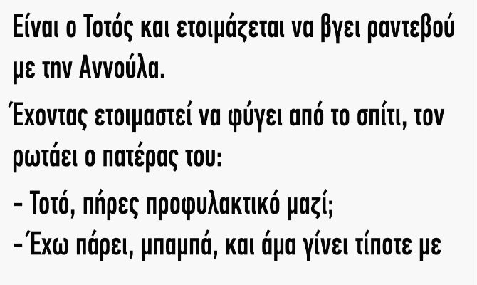 – Τοτό, πήρες προφυλακτικό μοζί;