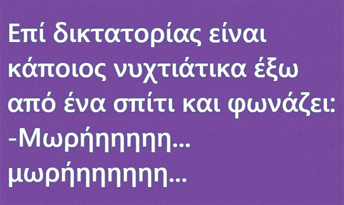Επί δικτατορίας και με δύο αστυνομικούς στη γωνία να παρακολουθούν ,είναι κάποιος έξω από ένα σπίτι και φωνάζει δυνατά :