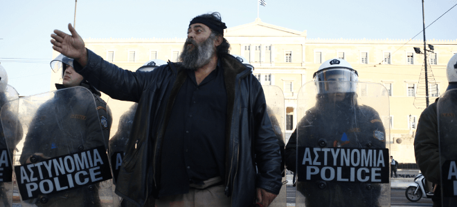 Ο Κρητικός αφήνει τα εργαλεία του, ανεβαίνει στο φράχτη και φωνάζει όσο πιο δυνατά μπορούσε :