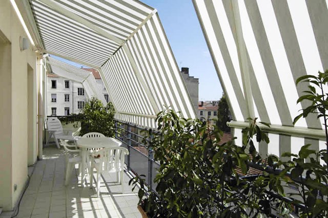 Μία γυναίκα θέλει να βάλει τέντες σπίτι της.