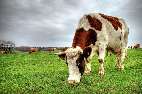 | Μια μέρα πάει ο παππούς στον στάβλο και βλέπει την αγελάδα ψόφια.