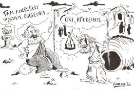 Όταν είδε ο Διογένης κρατικούς ταμίες να έχουν πιάσει κάποιον που είχε κλέψει ένα μπουκάλι, παρατήρησε: «Οι μεγάλοι κλέφτες έχουν συλλάβει το μικρό κλέφτη».