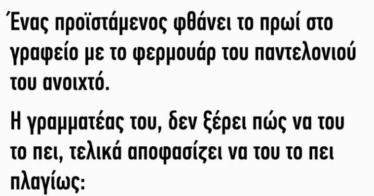 Ένας προϊστάμενος φθάνει το πρωί στο γραφείο με το φερμουάρ του παντελονιού του ανοιχτό.