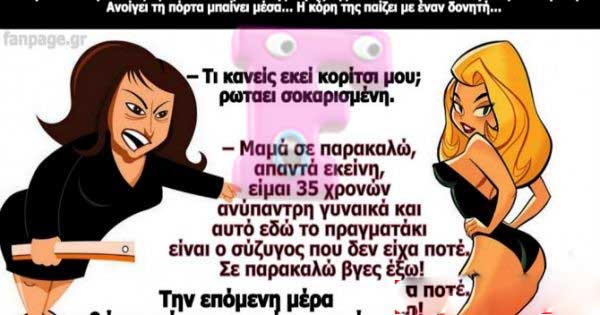 – Μαμά σε παρακαλώ, απαντά εκείνη, είμαι 35 χρονών ανύπαντρη γυναικά και αυτό εδώ το πραγματάκι είναι ο σύζυγος που δεν είχα ποτέ. Σε παρακαλώ βγες έξω!