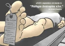 Μαζεύτηκαν όλοι γύρω από το τραπέζι των χειρουργικών επεμβάσεων με το νεκρό σώμα καλυμμένο με ένα άσπρο σεντόνι. Ο καθηγητής άρχισε το μάθημα με τα εξής λόγια: