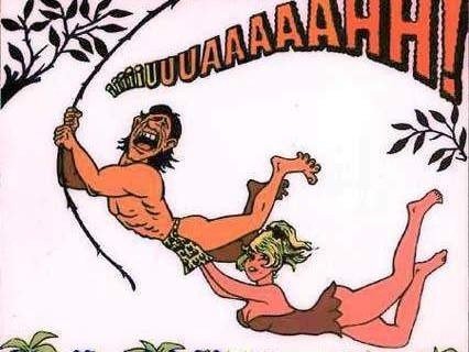 – Ο Ταρζάν βγάζει το ταρζανοσλίπ, πλησιάζει και της δίνει μια δυνατή κλωτσιά ανάμεσα στα πόδια.