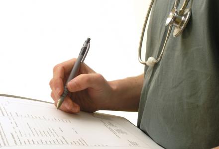 Ο γιατρός ατάραχος γράφει γρήγορα μια συνταγή: