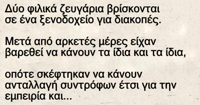 Δύο φιλικά ζευγάρια αποφάσισαν να περάσουν ένα Σαββατοκύριακο σε ένα ξενοδοχείο.