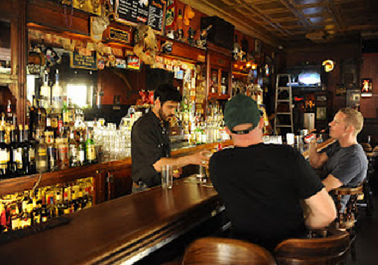 1) η barwoman είναι ξανθιά,
