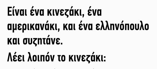Είναι ένα κινεζάκι, ένα αμερικανάκι και ένα ελληνόπουλο και συζητάνε.