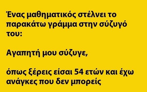 Ένας μαθηματικός στέλνει το παρακάτω γράμμα στην σύζυγο του: