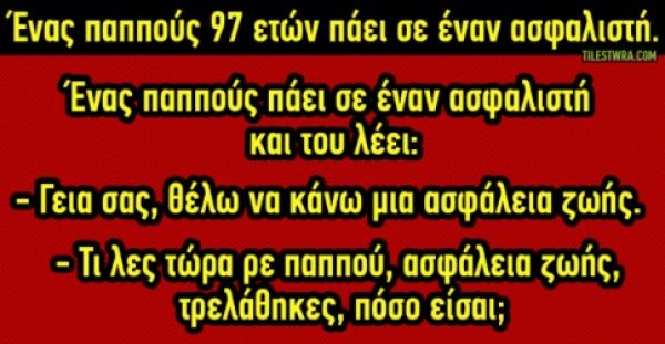 – 97 ετών, λέει ο παππούς. Τρελαίνεται ο ασφαλιστής.