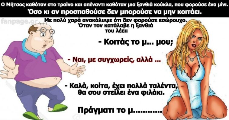 Ο Μήτσος καθόταν στο τραίνο και απέναντι καθόταν μια ξανθιά κούκλα, που φορούσε ένα μίνι.