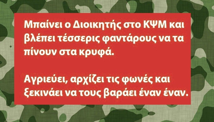 Μπαίνει ο Διοικητής στο ΚΨΜ και βλέπει τέσσερις φαντάρους