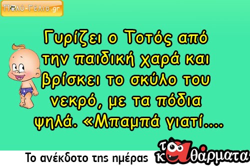 «Μπαμπά, μπαμπά γιατί το σκυλάκι μας πέθανε με τα πόδια σηκωμένα ψηλά;» ρωτάει τον πατέρα του.