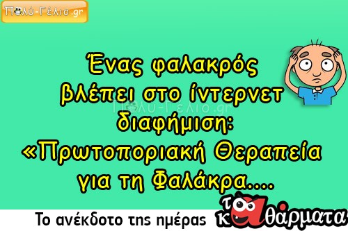 Ανέκδοτο: Ένας φαλακρός βλέπει διαφήμιση: «Πρωτοποριακή Θεραπεία για τη Φαλάκρα….
