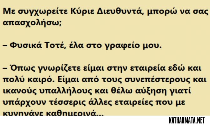 – Με συγχωρείτε Κύριε Διευθυντά, μπορώ να σας απασχολήσω;