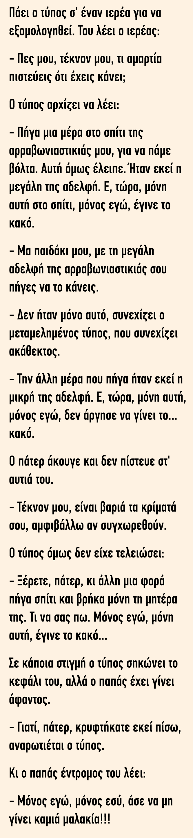 σε Ανέκδοτα Ωραιο Ελεος LOL Τελειο WTF Κλαμα OMG WIN Έξυπνο Πάει ο τύπος σε ένα παπά για να εξομολογηθεί 1.2εκ. φορές διαβάστηκε. 616Κοινοποιήσεις WhatsApp Viber Facebook Messenger Κοινοποιήστε στο Facebook Δείτε περισσότερα Προηγούμενο ανέκδοτο –Ανέκδοτο: Η Κοπριά και ο τρελός …!Πολύ γέλιο Επόμενο ανέκδοτο Ανέκδοτο: Οι παντόφλες του μπαμπά