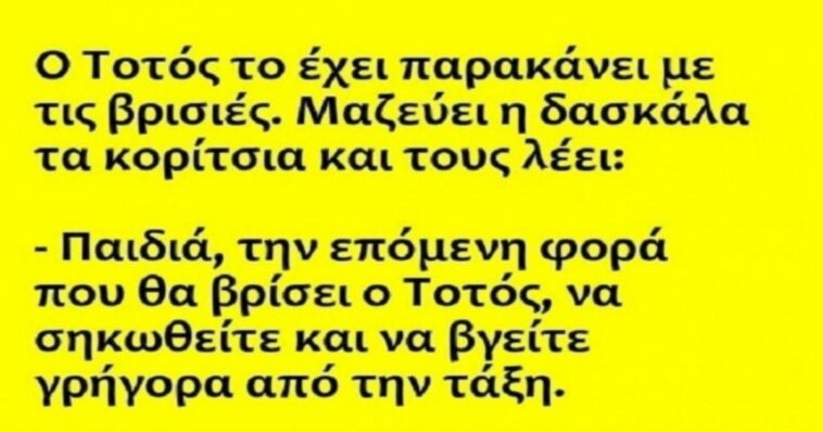 Ανέκδοτο: Ο Τοτός το έχει παρακάνει με τις βρισιές. Μαζεύει η δασκάλα τα κορίτσια και τους λέει