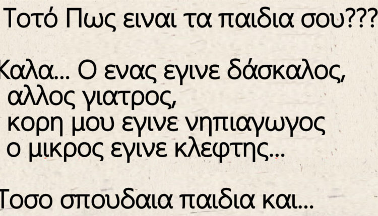 -Καλα… Ο ενας εγινε δάσκαλος, ο αλλος γιατρος, η κορη μου εγινε νηπιαγωγος κ ο μικρος εγινε κλεφτης…