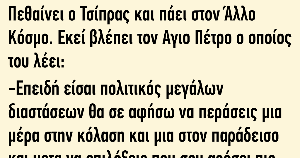 σε ΑνέκδοταΑνέκδοτο: Πεθαίνει ο Τσίπρας και πάει στον άλλο κόσμο