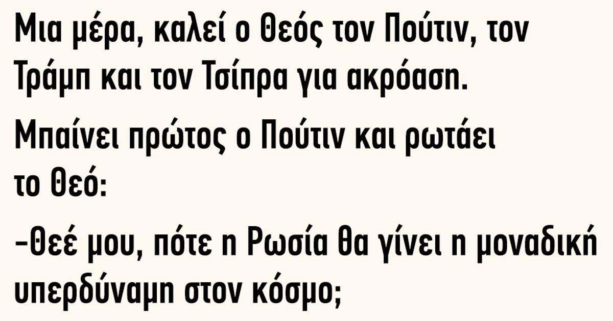 σε ΑνέκδοταΜια μέρα καλεί ο Θεός τον Πούτιν τον Τράμπ και τον Τσίπρα για ακρόαση