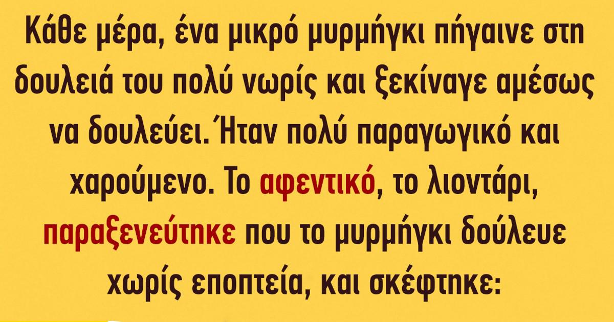 σε ΑνέκδοταΑνέκδοτο: Κάθε μέρα ένα μικρό μυρμήγκι πήγαινε στη δουλειά