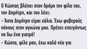 σε ΑνέκδοταΑνέκδοτο: Ο Κώστας βλέπει στον δρόμο τον φίλο του τον Δημήτρη και του λέει