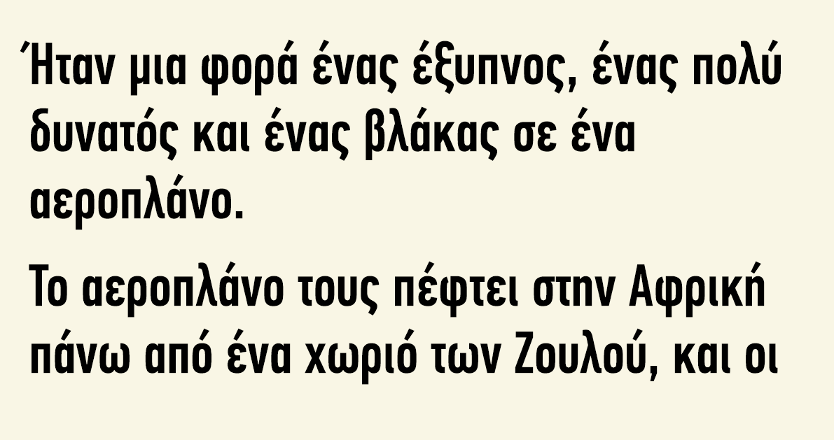 σε ΑνέκδοταΑνέκδοτο: Ήταν μία φορά ένας έξυπνος ένας πολύ δυνατός και ένας βλάκας μέσα σε ένα αεροπλάνο