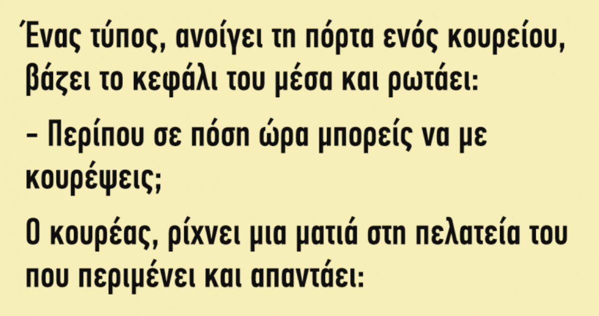 σε ΑνέκδοταΑνέκδοτο: Ένας τύπος ανοίγει τη πόρτα ενός κουρείου…
