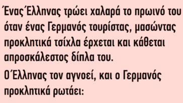 σε ΑνέκδοταΈνας Έλληνας τρώει χαλαρά το πρωινό του σε ένα εστιατόριο