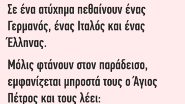 σε ΑνέκδοταΑνέκδοτο: Σε ένα ατύχημα πεθαίνουν ένας Γερμανός, ένας Ιταλός και ένας Ελληνας