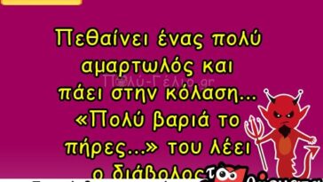 σε Ανέκδοτα, Σoκιv ανεκδοταΣόκιν Ανέκδοτο: Πεθαίνει ένας πολύ αμαρτωλός και πάει κατευθείαν στην κόλαση…