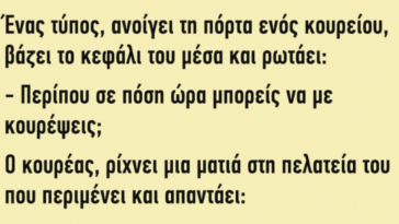 σε ΑνέκδοταΑνέκδοτο: Ένας τύπος, ανοίγει τη πόρτα ενός κουρείου..