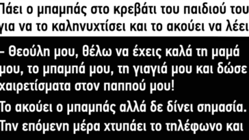 σε ΑνέκδοταΑνέκδοτο: πάει ο μπαμπάς στο κρεβάτι του παιδιού του για να το καληνυχτίσει και…