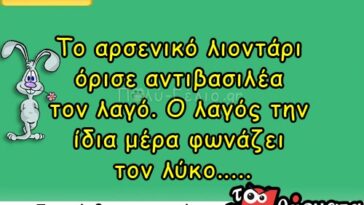 σε ΑνέκδοταΑνέκδοτο: Το αρσενικό λιοντάρι όρισε αντιβασιλέα τον λαγό……