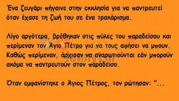 σε ΑνέκδοταΑνέκδοτο: Ρώτησαν τον Άγιο Πέτρο εάν μπορούσαν να παντρευτούν στον Παράδεισο.