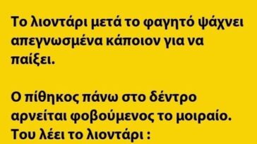 σε ΑνέκδοταΤο λιοντάρι μετά το φαγητό ψάχνει απεγνωσμένα…