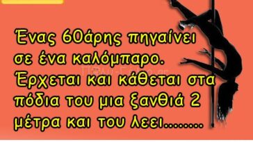 σε Ανέκδοτα, Ανεκδοτα με ξανθιεςΈνας 60άρης πηγαίνει σε ένα καλόμπαρο. Έρχεται και κάθεται στα πόδια του μια ξανθιά…