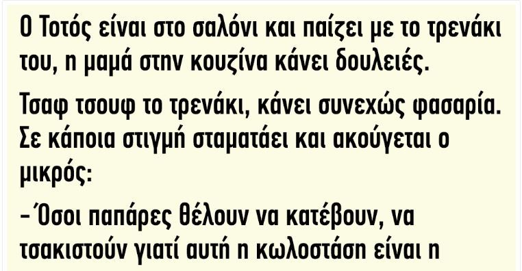 σε Ανέκδοτα, Ανεκδοτα με τον ΤοτοΑνέκδοτο: O Τοτός είναι στο σαλόνι και παίζει με το τρενάκι του..