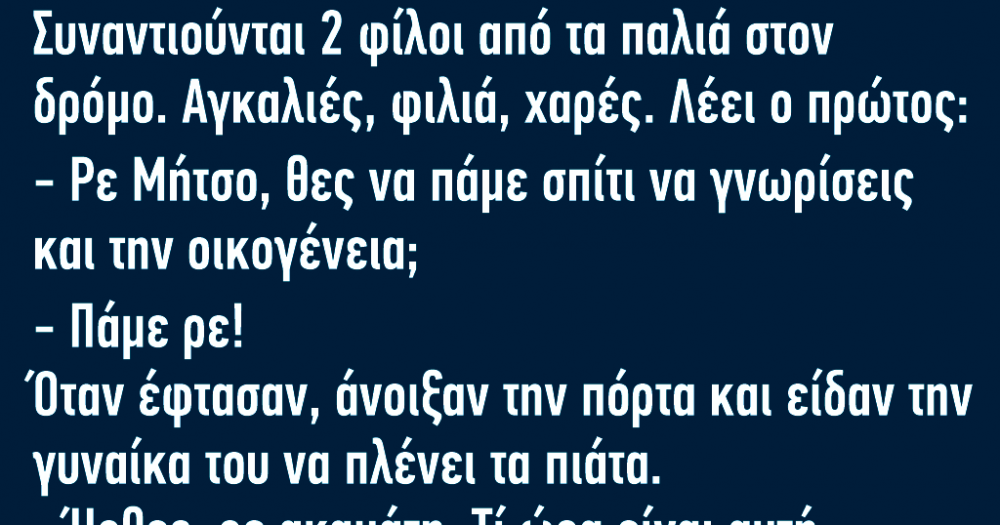 σε Ανέκδοτα, Ανέκδοτα με πεθερέςΣυναντιούνται 2 φίλοι από τα παλιά στον δρόμο