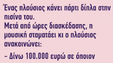 σε ΑνέκδοταΑνέκδοτο: Ένας πλούσιος κάνει πάρτι δίπλα στην πισίνα του…