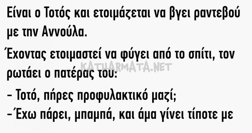 σε Ανέκδοτα, Ανεκδοτα με την Αννουλα, Ανεκδοτα με τον ΤοτοΑνέκδοτο: Είναι ο Τοτός και ετοιμάζεται να βγει ραντεβού με την Αννούλα..