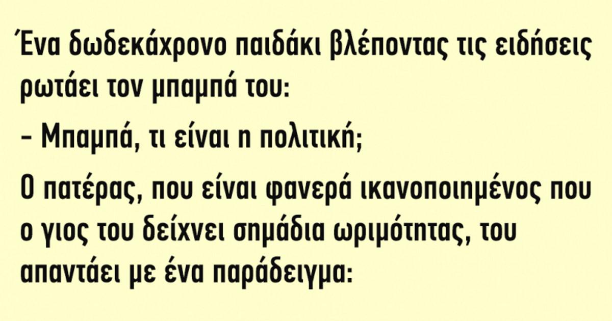 σε ΑνέκδοταΑνέκδοτο: Ένα 12χρονο παιδάκι βλέποντας ειδήσεις ρωτάει τον μπαμπά του…